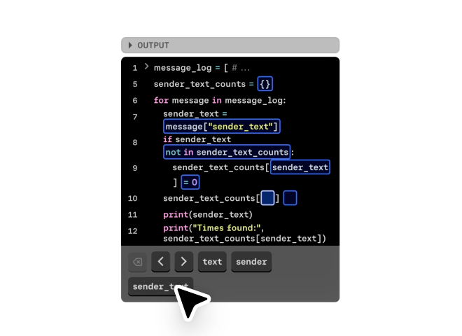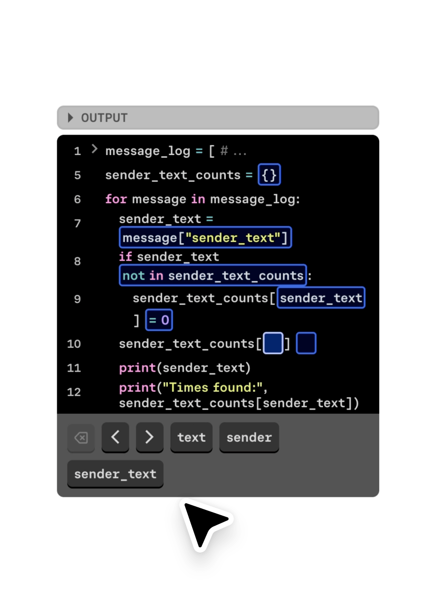 Interactive lessons that focus on the logic of programs (not syntax) make even complex ideas feel intuitive. Custom, intelligent feedback catches mistakes as you learn.